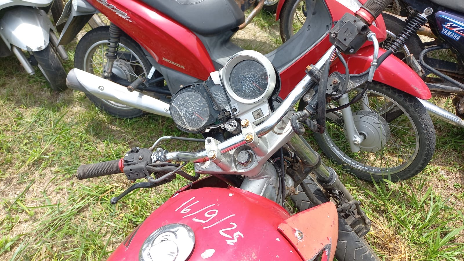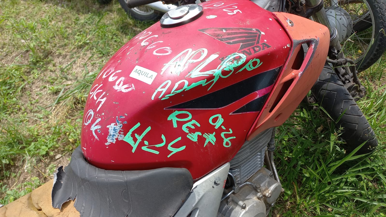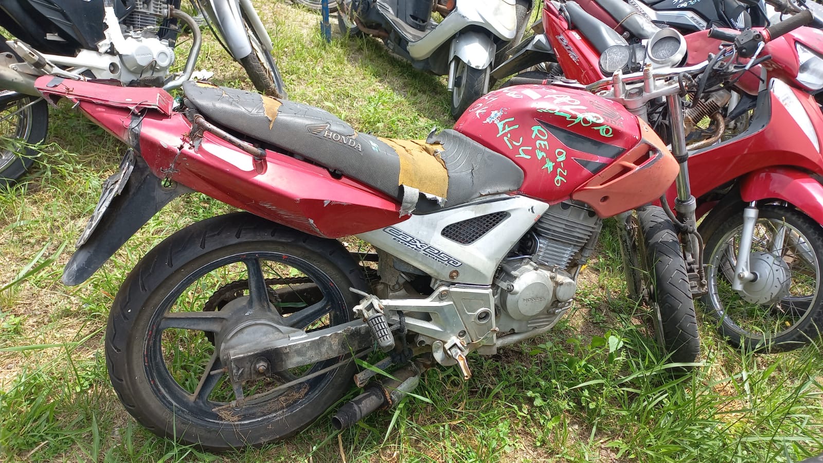 VEÍCULO COM AVARIAS NAS CARENAGENS E BANCO. PLACA E RETROVISORES AUSENTES. REGULARIZAÇÃO POR CONTA DO ARREMATANTE.