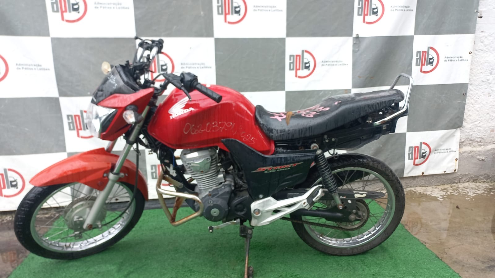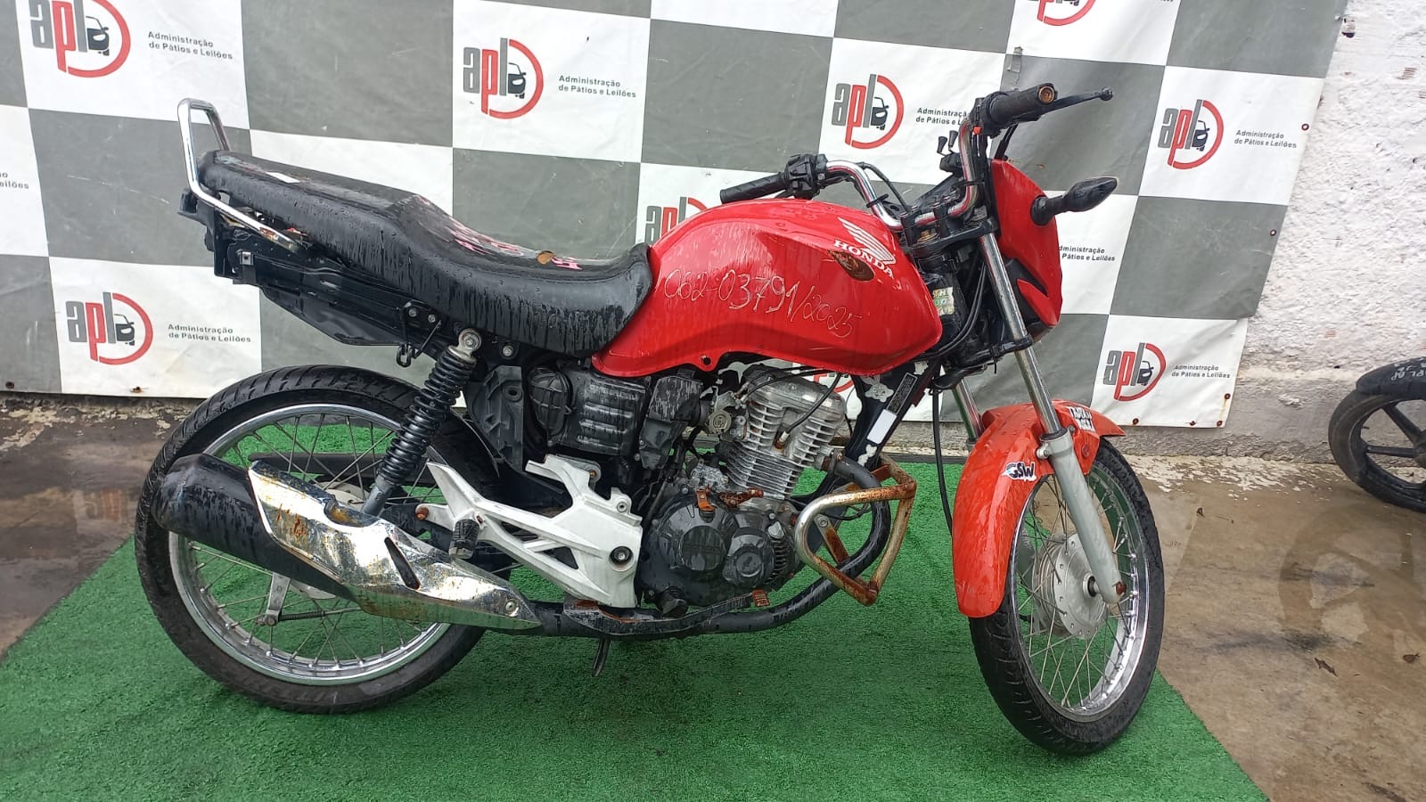 VEÍCULO COM CARENAGEM TRASEIRA, PLACA E RETROVISORES AUSENTES. REGULARIZAÇÃO POR CONTA DO ARREMATANTE.