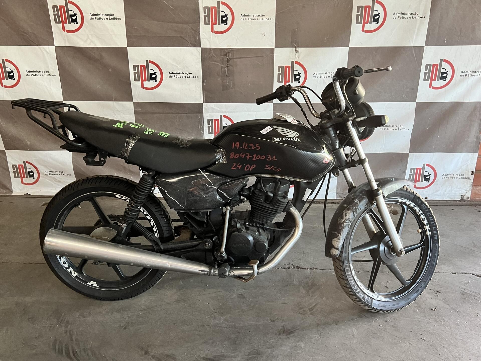 VEÍCULO COM AVARIAS NAS CARENAGENS. PLACA E RETROVISORES AUSENTES. REGULARIZAÇÃO POR CONTA DO ARREMATANTE.