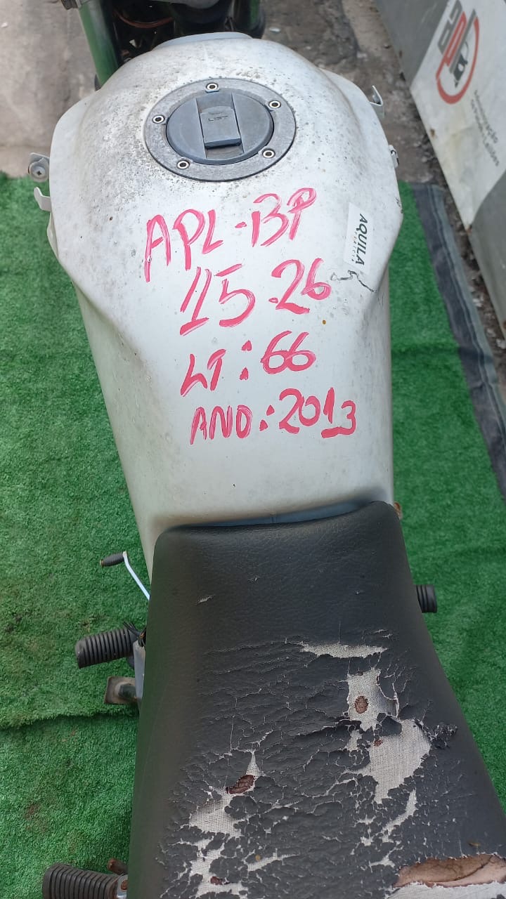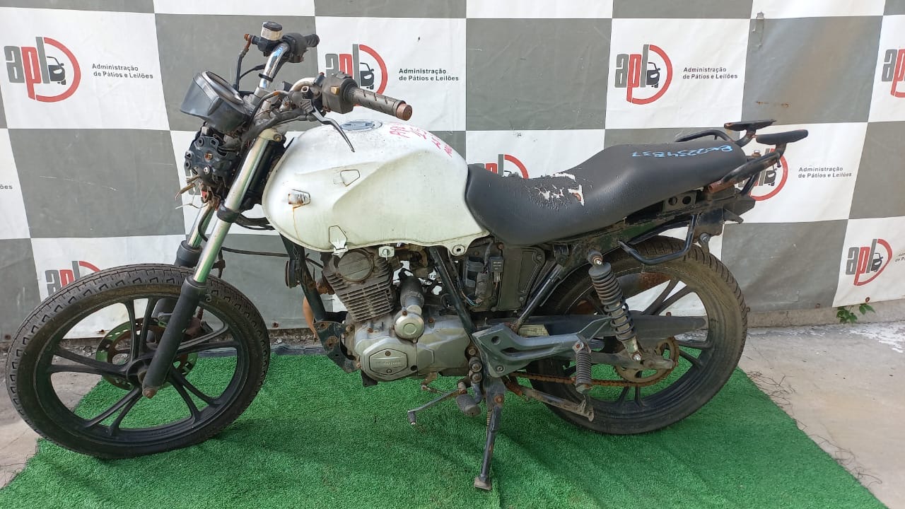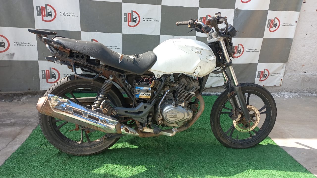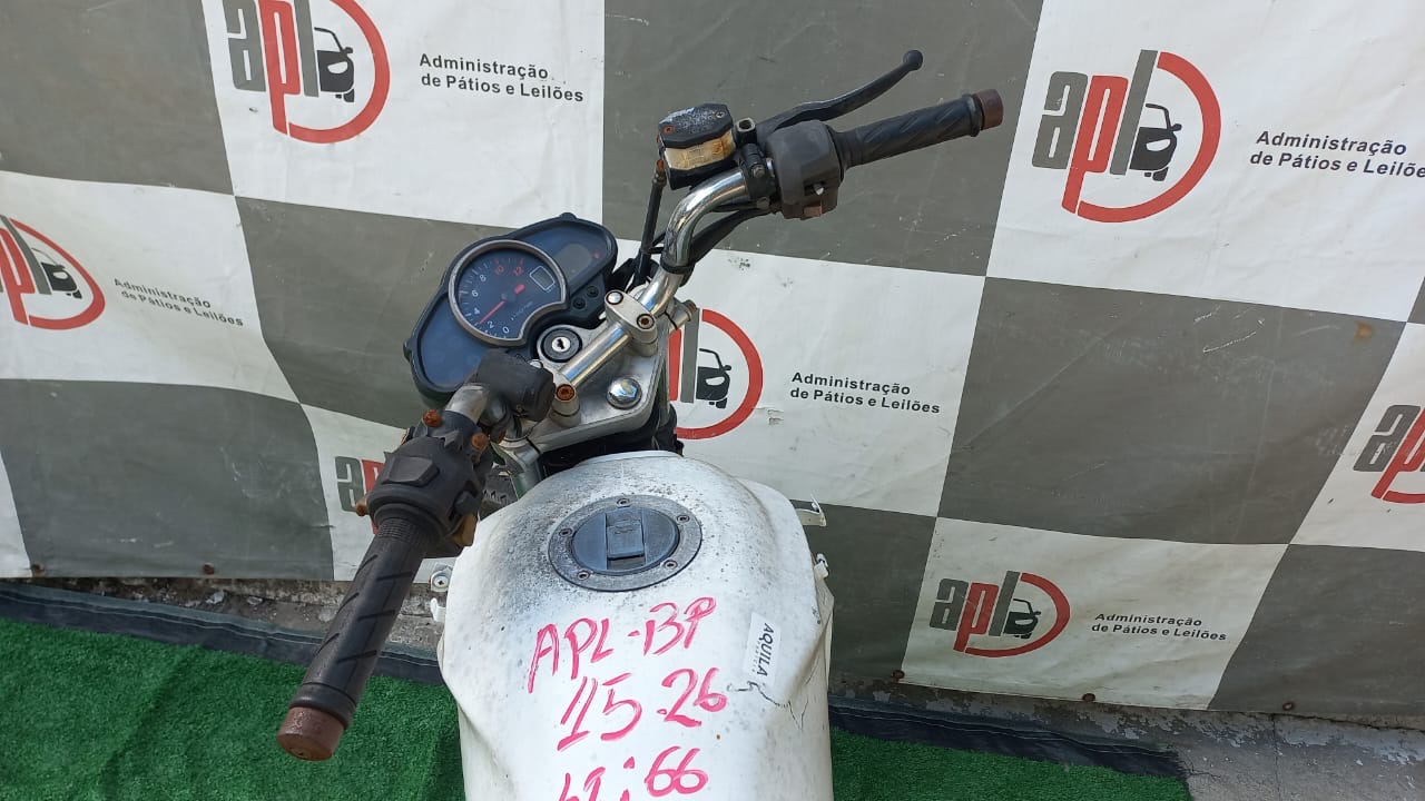 VEÍCULO COM AVARIAS NAS CARENAGENS. CARENAGEM FRONTAL, TRASEIRA, PLACA E RETROVISORES AUSENTES. REGULARIZAÇÃO POR CONTA DO ARREMATANTE.