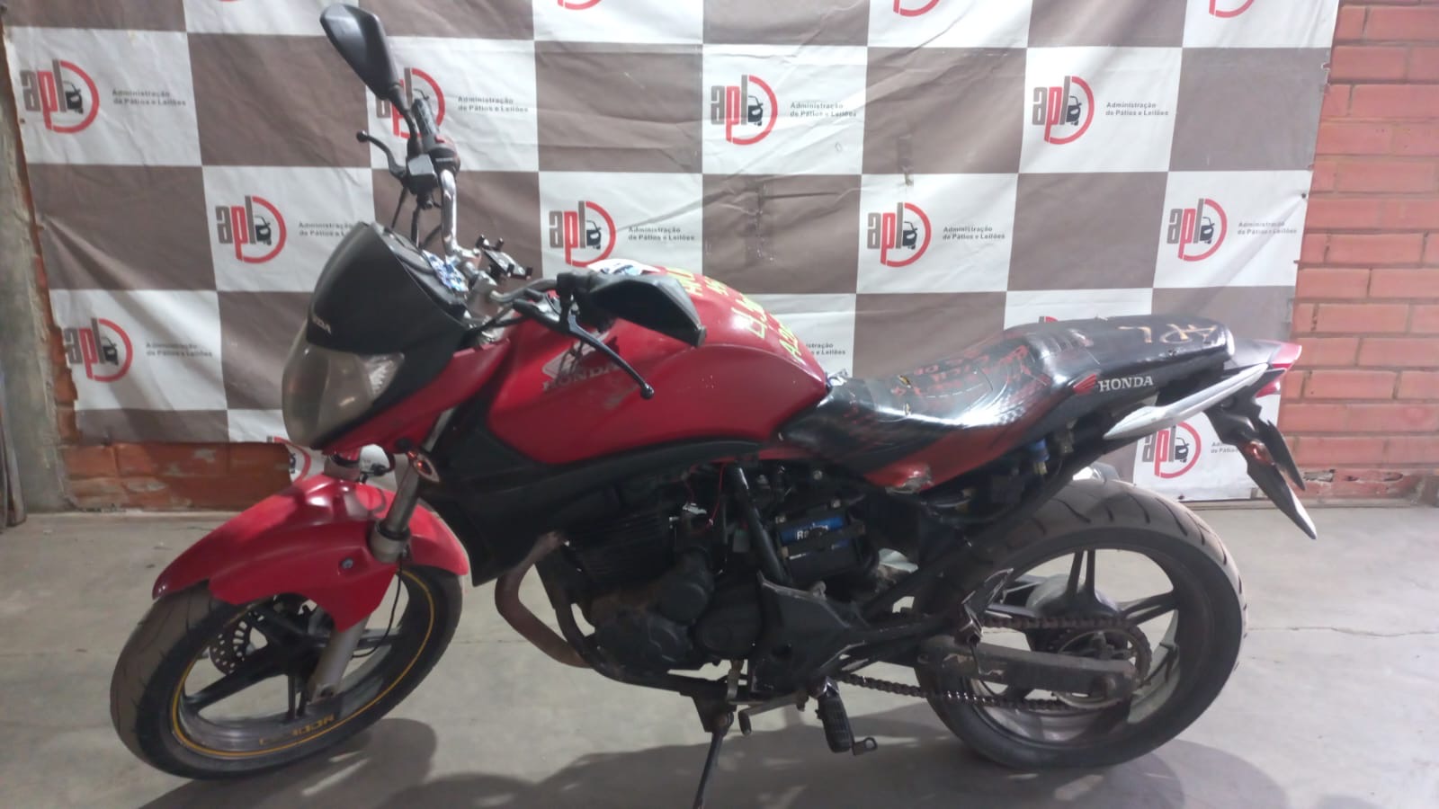 VEÍCULO COM AVARIAS NAS CARENAGENS. PLACA AUSENTE. REGULARIZAÇÃO POR CONTA DO ARREMATANTE.