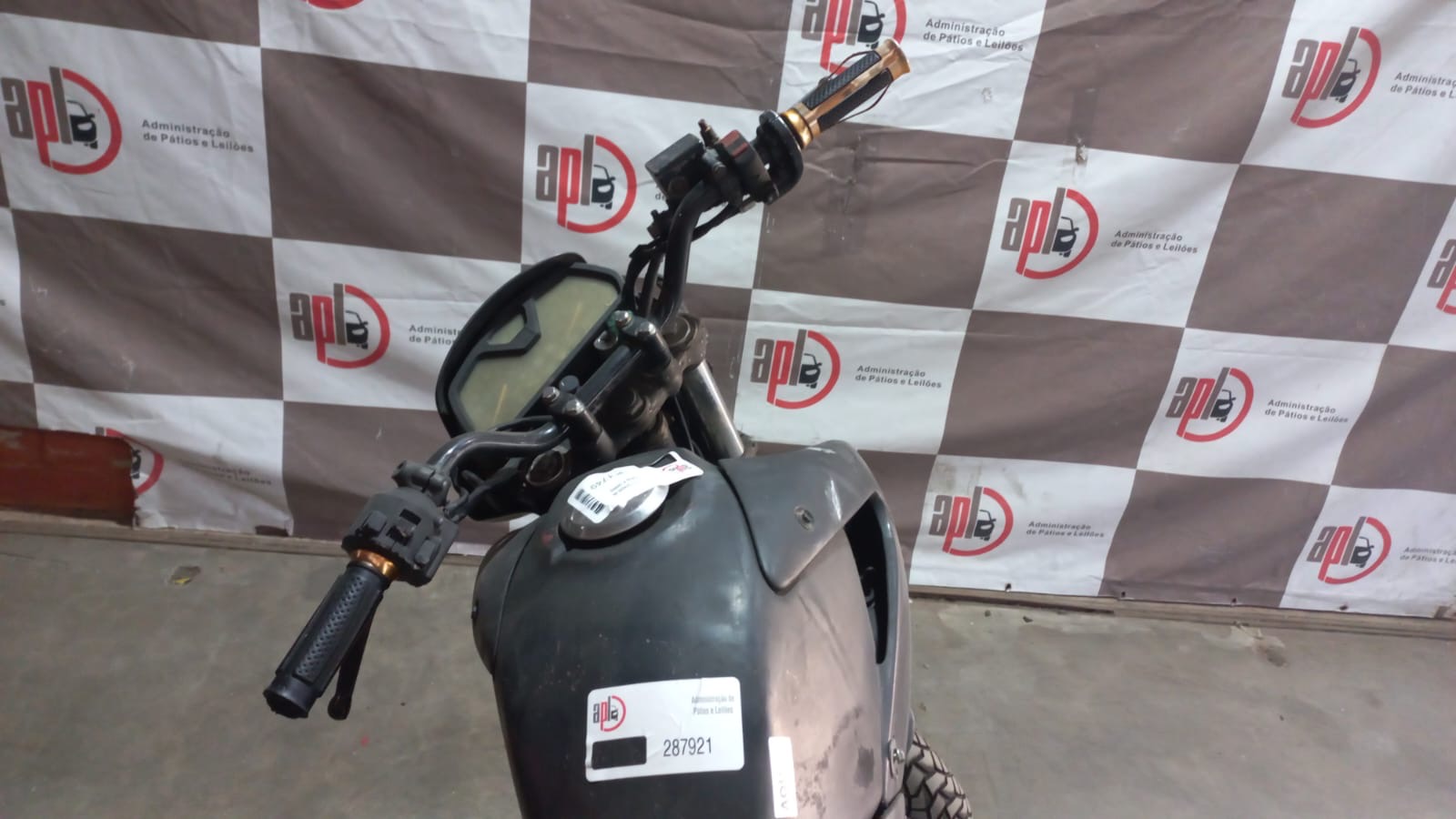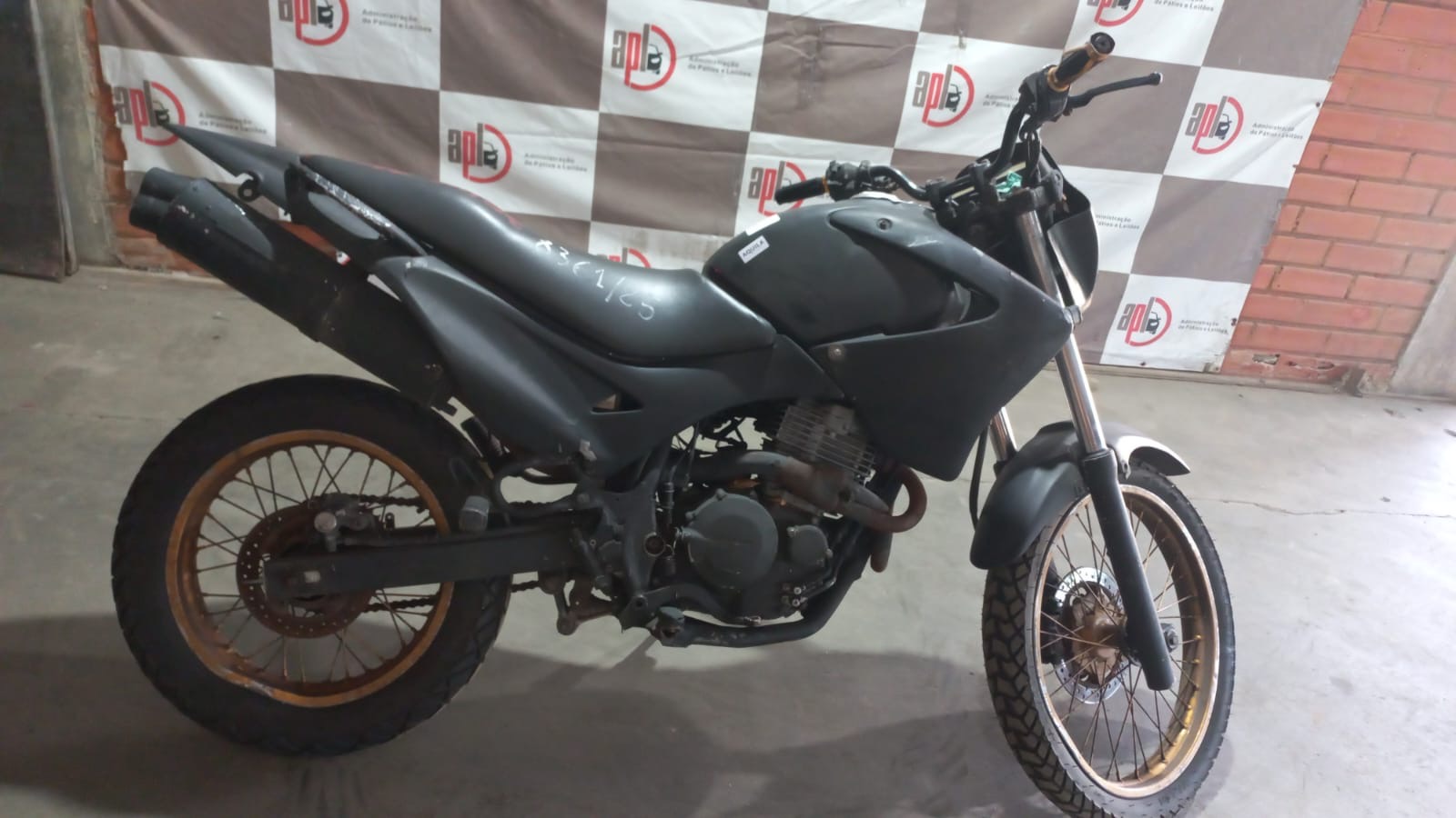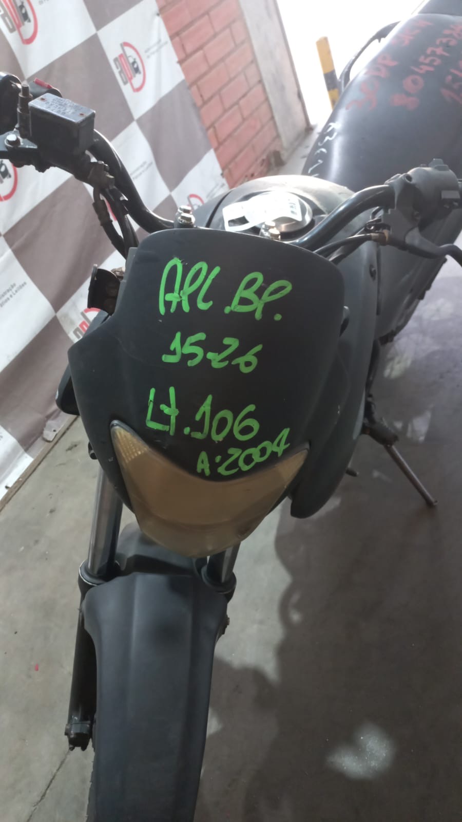 VEÍCULO COM AVARIAS NAS CARENAGENS. PLACA E RETROVISORES AUSENTES. REGULARIZAÇÃO POR CONTA DO ARREMATANTE.