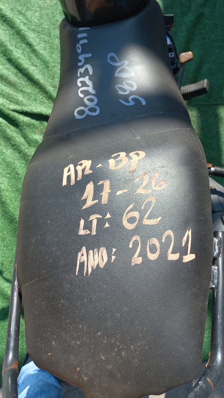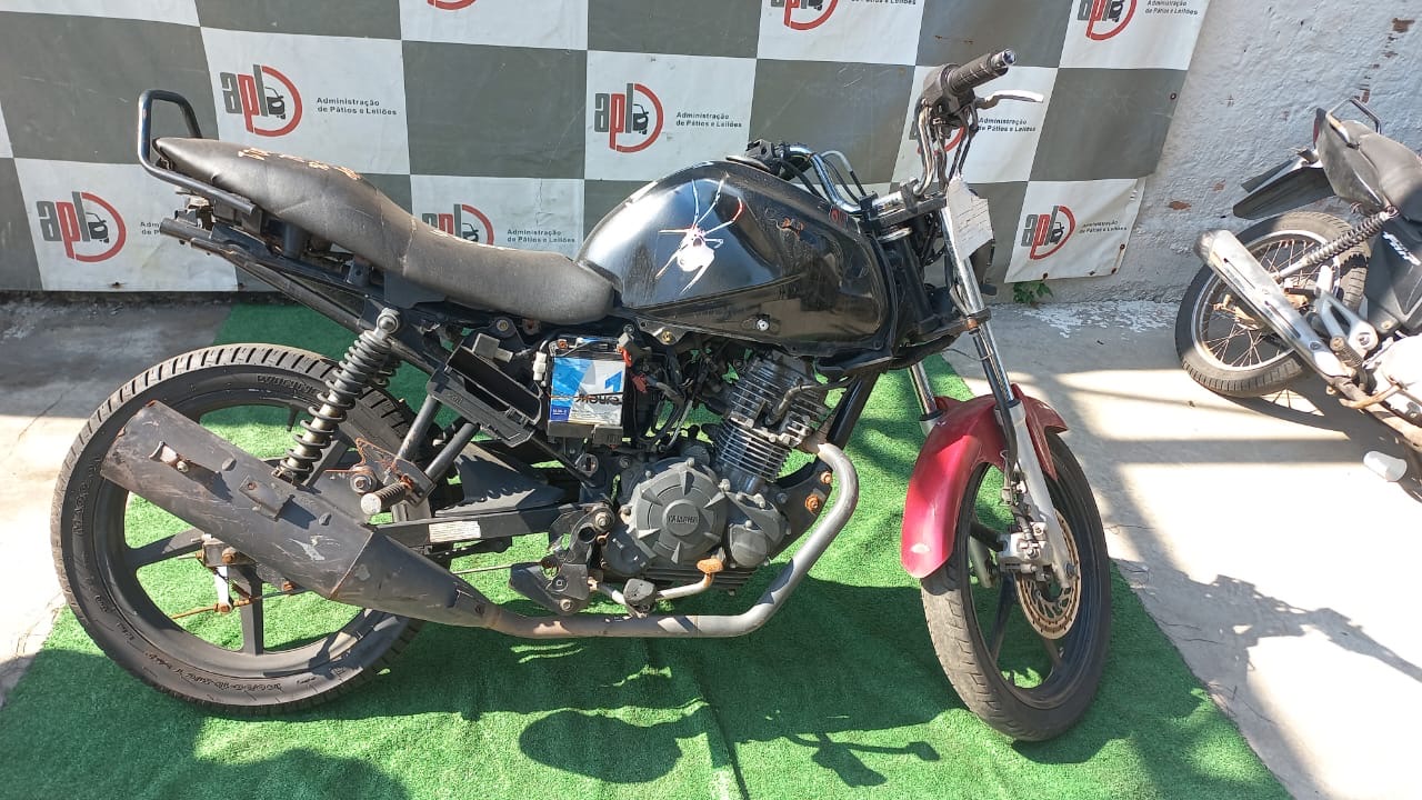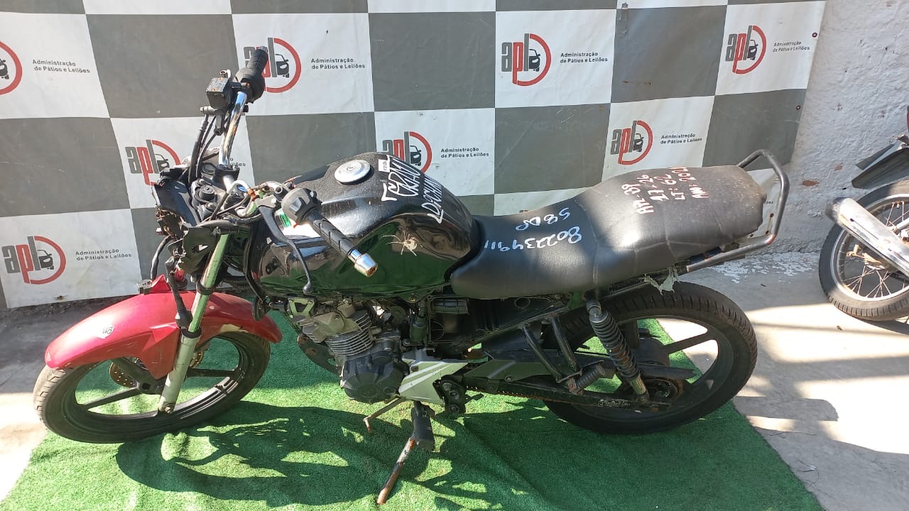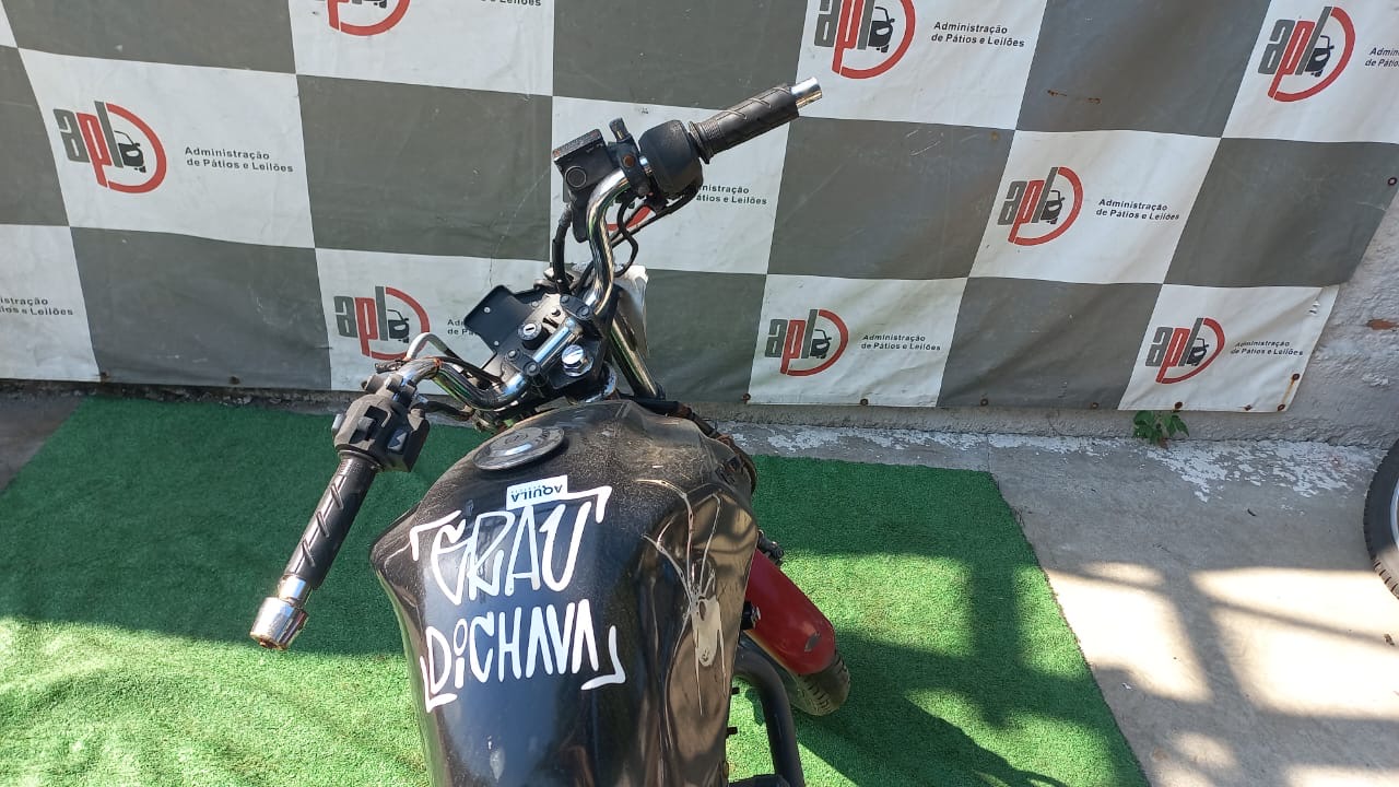 VEÍCULO COM AVARIAS NAS CARENAGENS. PARTE FRONTAL DANIFICADA. PLACA AUSENTE. REGULARIZAÇÃO POR CONTA DO ARREMATANTE.