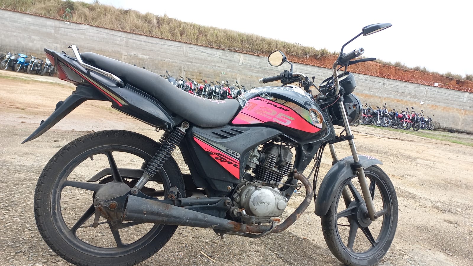 VEÍCULO COM AVARIAS NAS CARENAGENS E TANQUE. AUSENTE DE PLACA. REGULARIZAÇÃO POR CONTA DO ARREMATANTE.