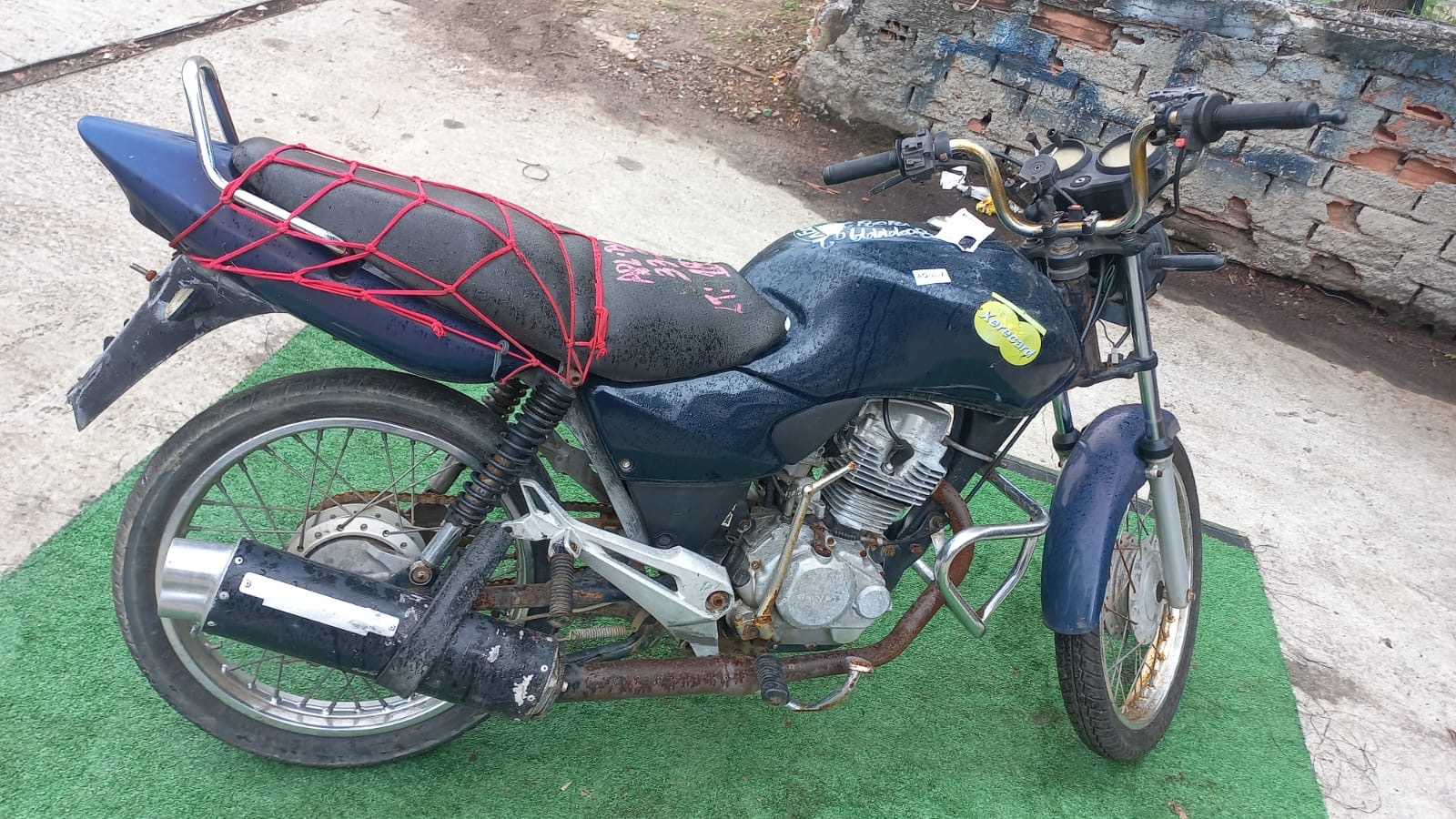 VEÍCULO COM AVARIAS NAS CARENAGENS. PLACA E RETROVISORES AUSENTES. REGULARIZAÇÃO POR CONTA DO ARREMATANTE.