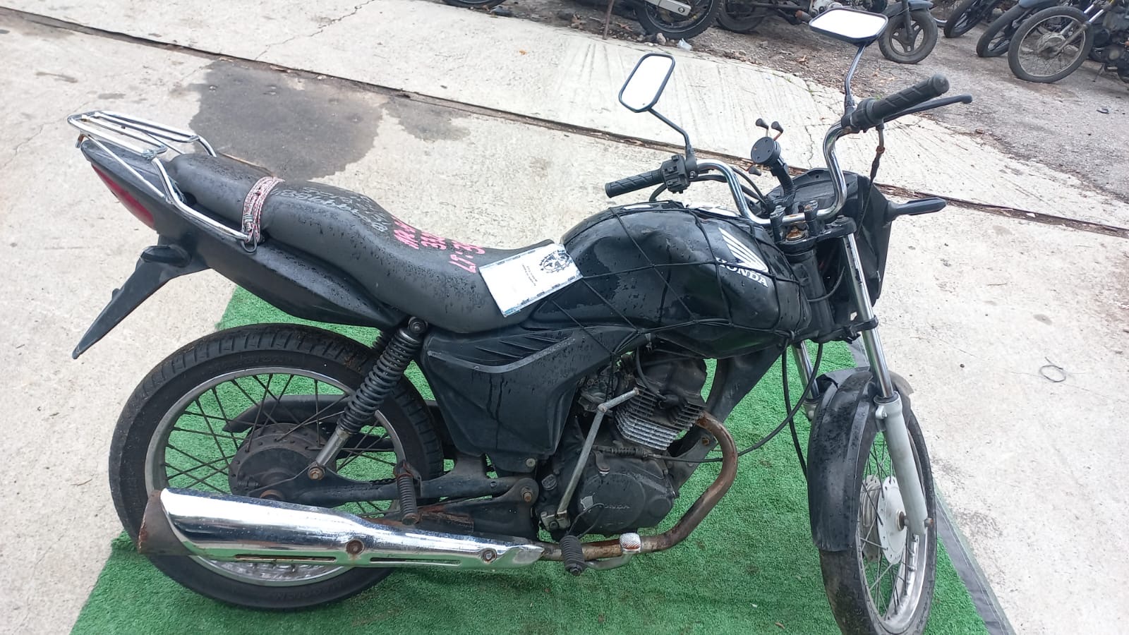 VEÍCULO COM AVARIAS NAS CARENAGENS. PLACA AUSENTE. REGULARIZAÇÃO POR CONTA DO ARREMATANTE.