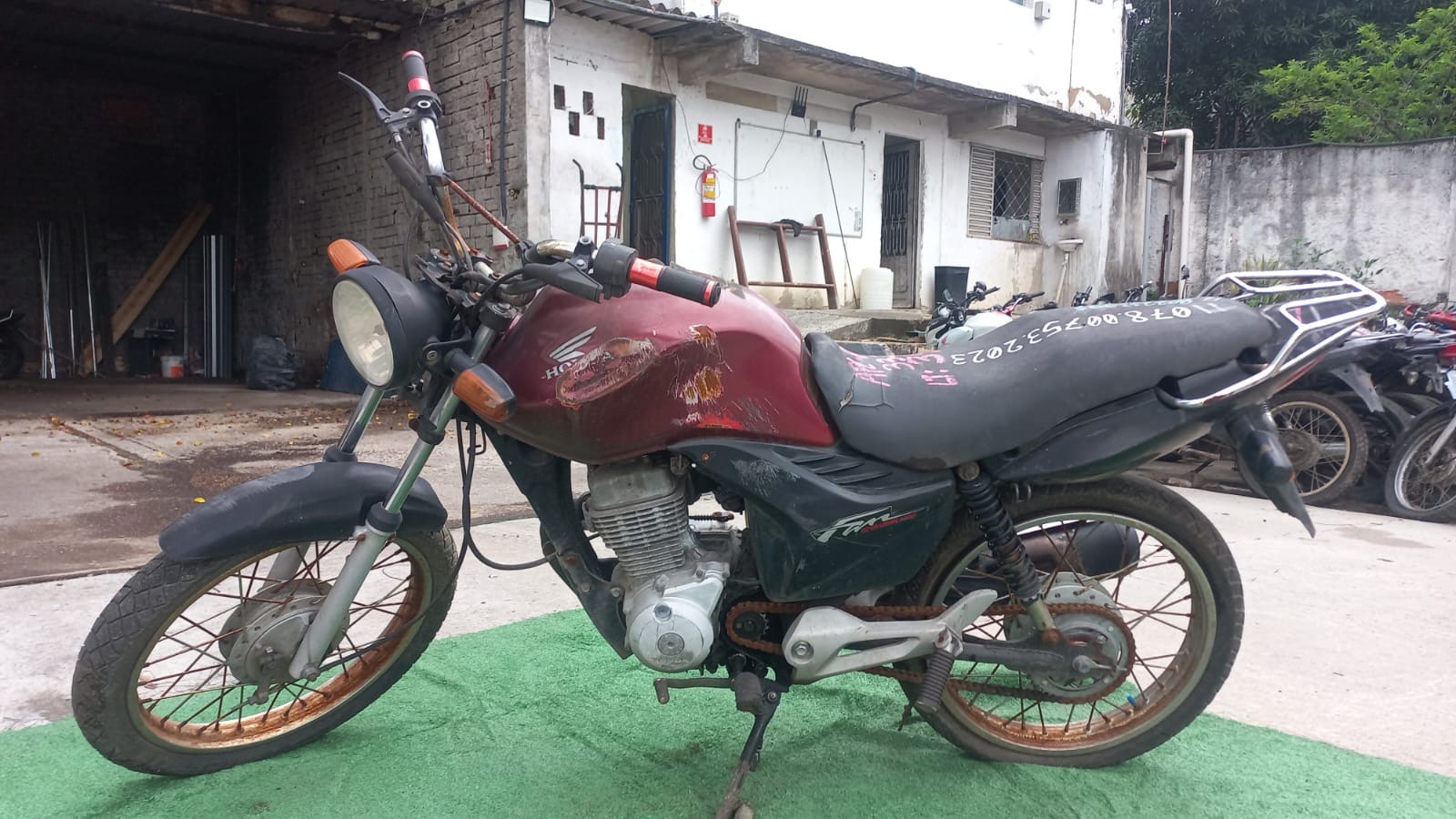 VEÍCULO COM AVARIAS NAS CARENAGENS. CHASSI COM INÍCIO DE OXIDAÇÃO. RETROVISORES E PLACA AUSENTES. REGULARIZAÇÃO POR CONTA DO ARREMATANTE.