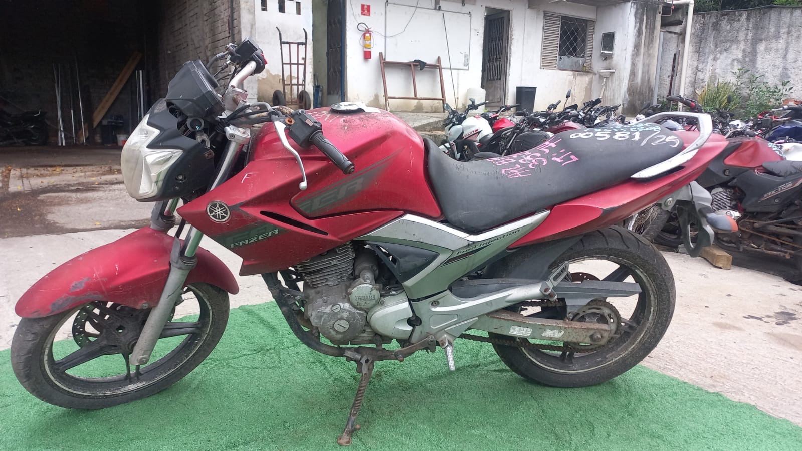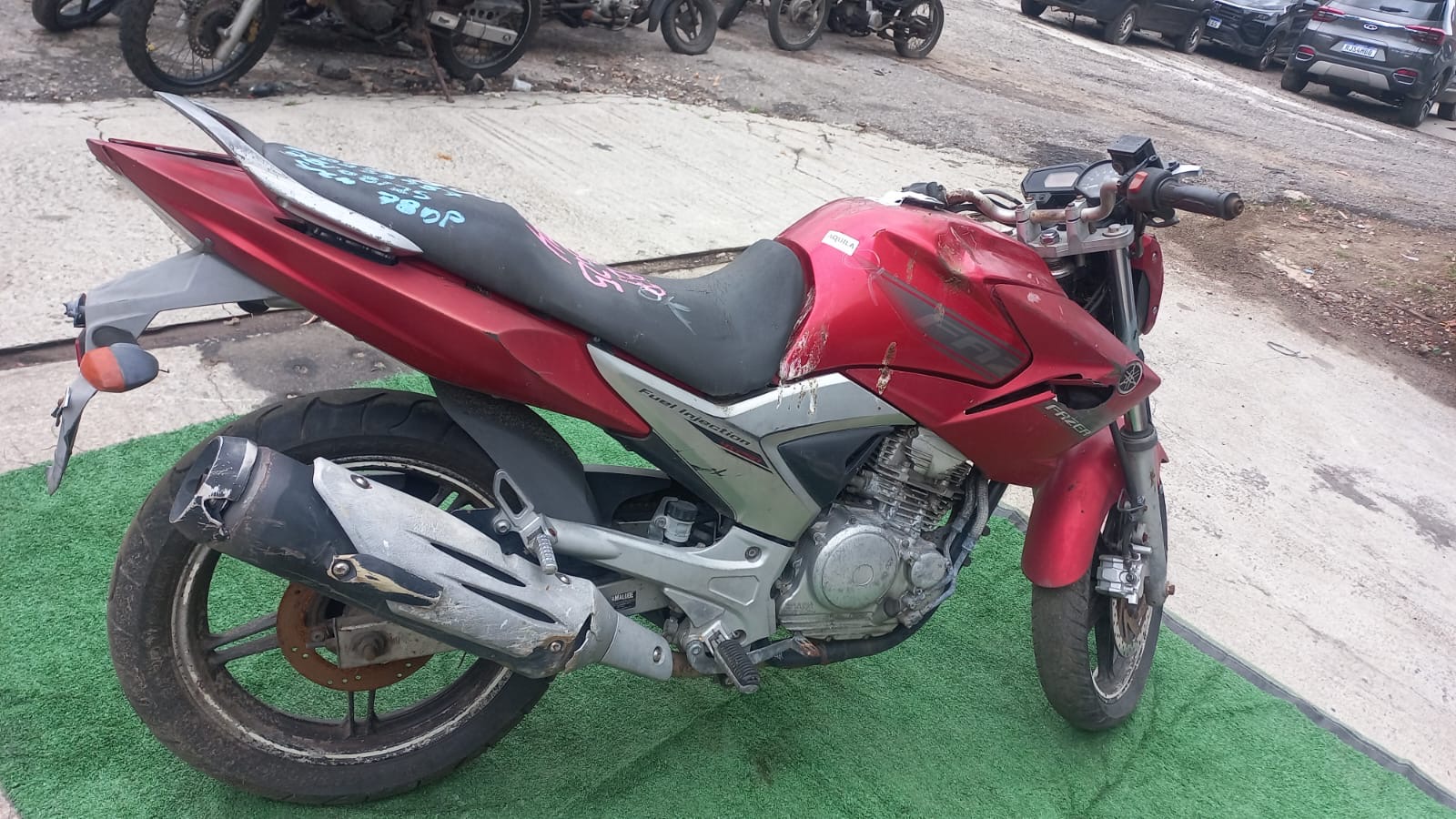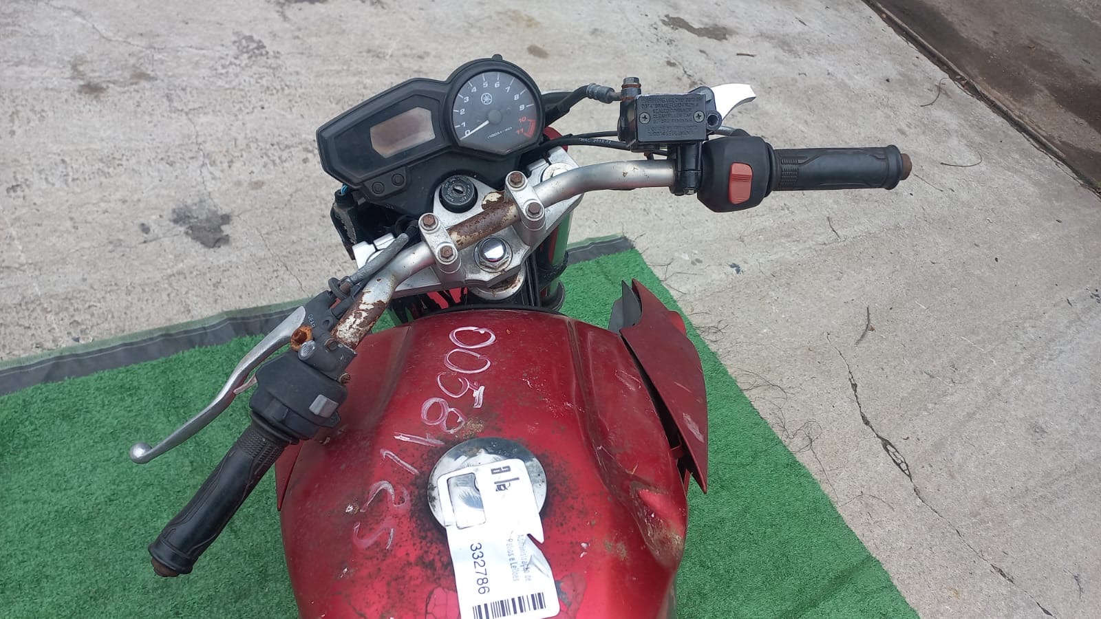 VEÍCULO COM AVARIAS NAS CARENAGENS. RETROVISORES E PLACA AUSENTES. REGULARIZAÇÃO POR CONTA DO ARREMATANTE.