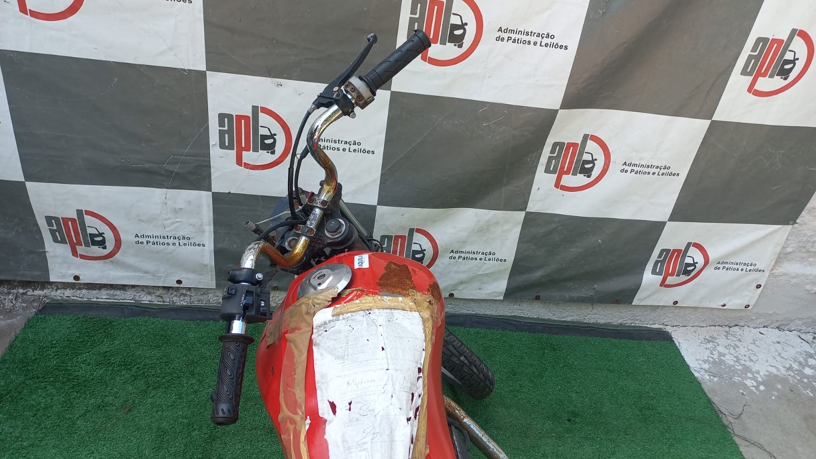 VEÍCULO COM AVARIAS NAS CARENAGENS. CARENAGEM DIANTEIRA, CARENAGEM TRASEIRA, PLACA E RETROVISORES AUSENTES. REGULARIZAÇÃO POR CONTA DO ARREMATANTE.