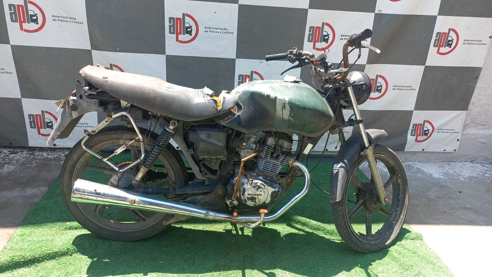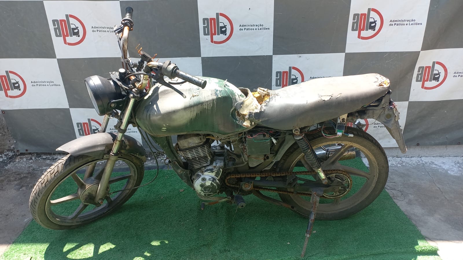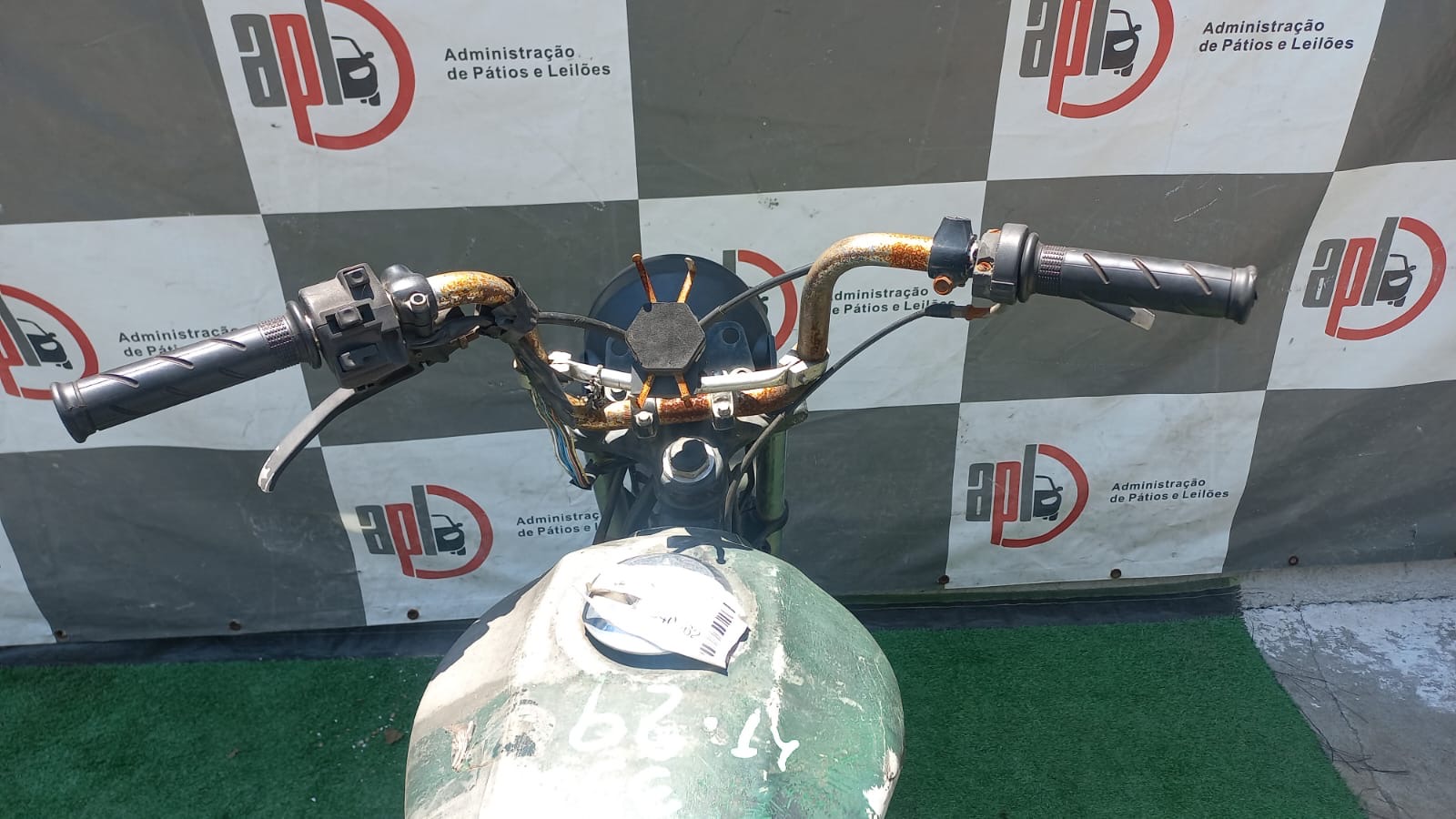 VEÍCULO COM AVARIAS NAS CARENAGENS, BANCO E TANQUE. COR DIVERGENTE DA BASE BIN. PLACA E RETROVISORES AUSENTES. REGULARIZAÇÃO POR CONTA DO ARREMATANTE.