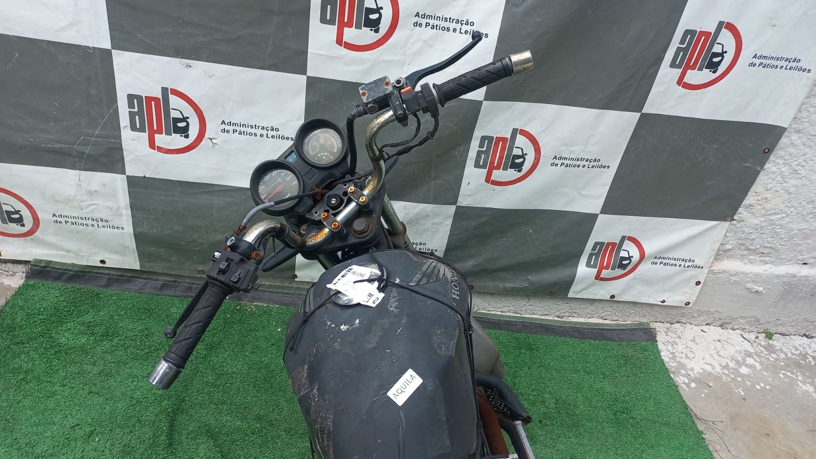 VEÍCULO COM AVARIAS NAS CARENAGENS. PLACA E RETROVISORES AUSENTES. REGULARIZAÇÃO POR CONTA DO ARREMATANTE.