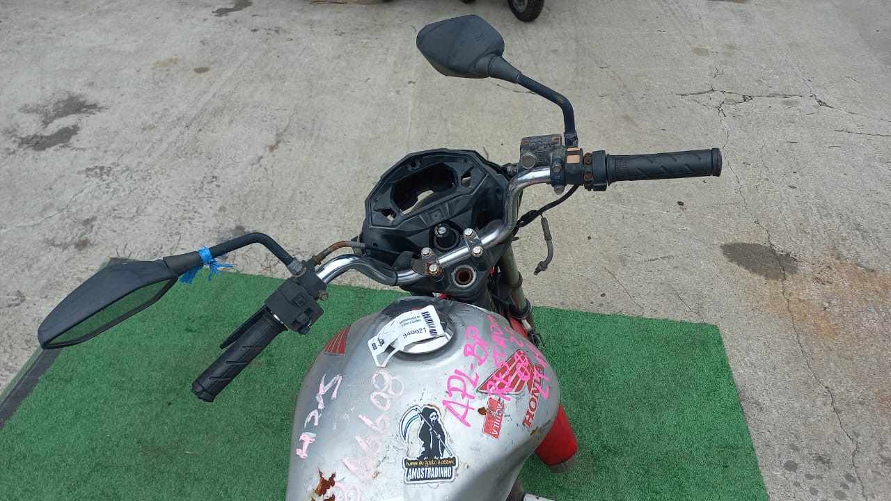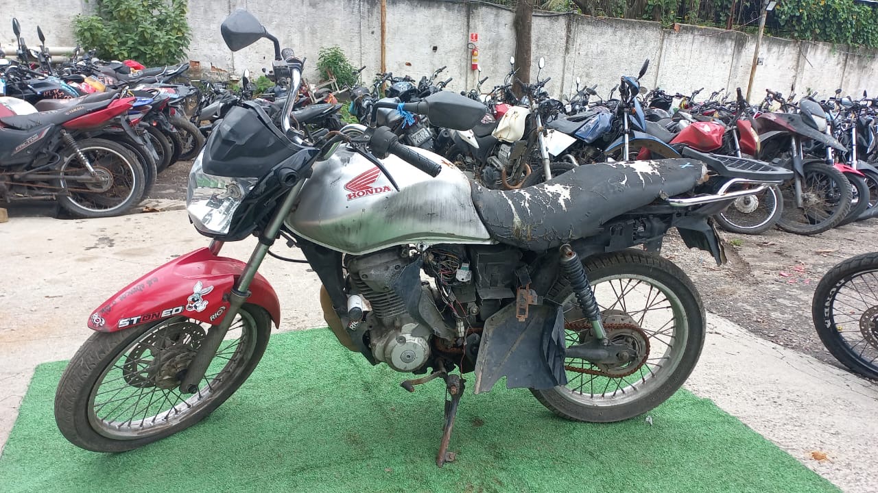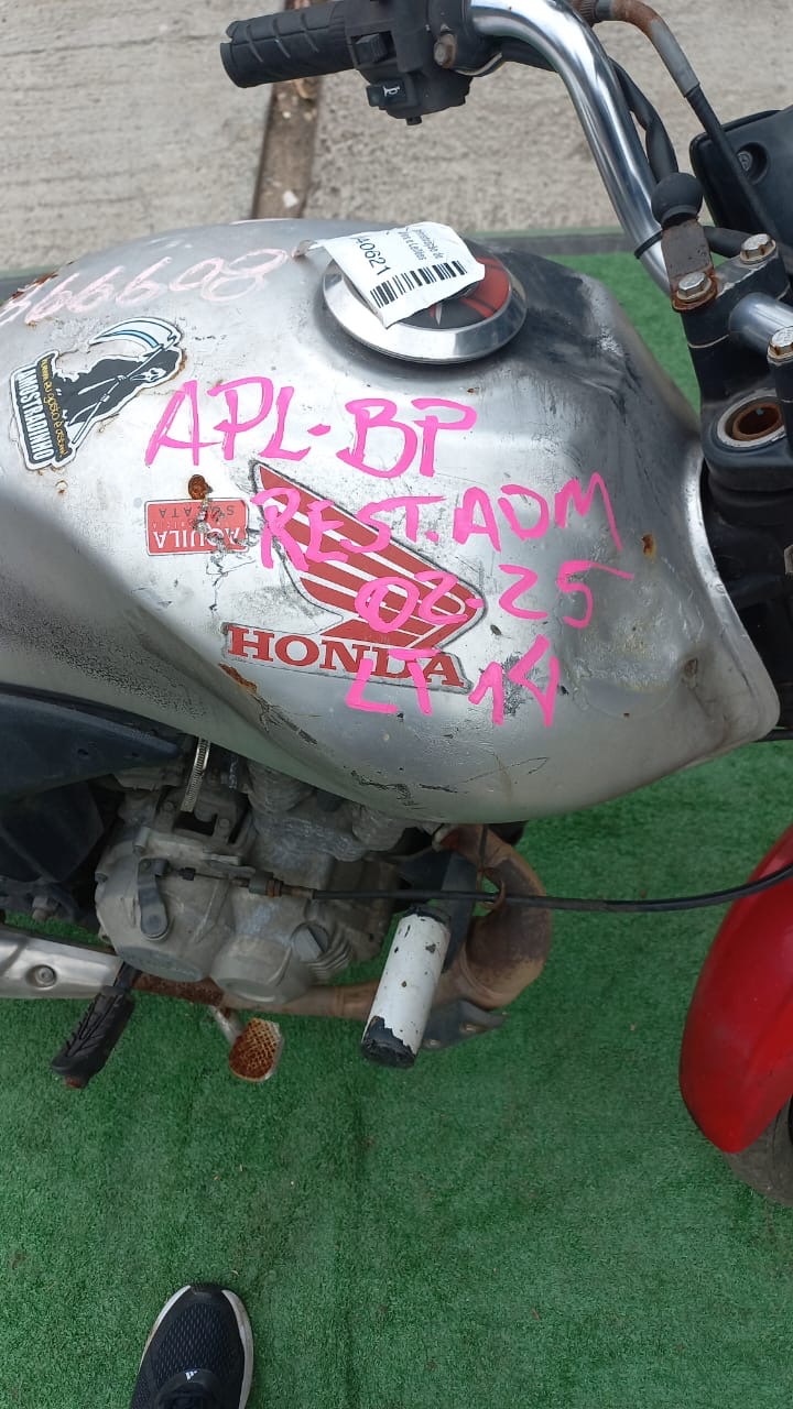 VEÍCULO COM AVARIAS NAS CARENAGENS E BANCO. PLACA AUSENTE. REGULARIZAÇÃO POR CONTA DO ARREMATANTE.