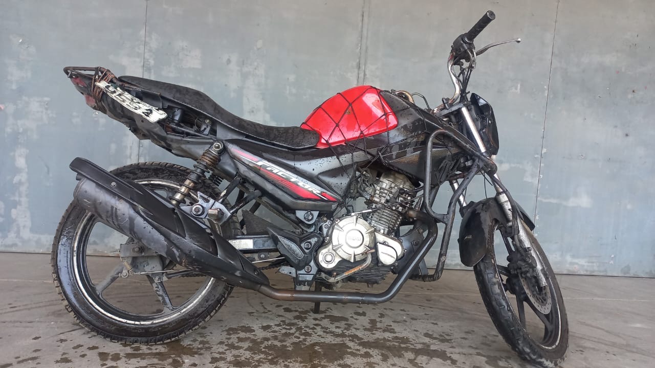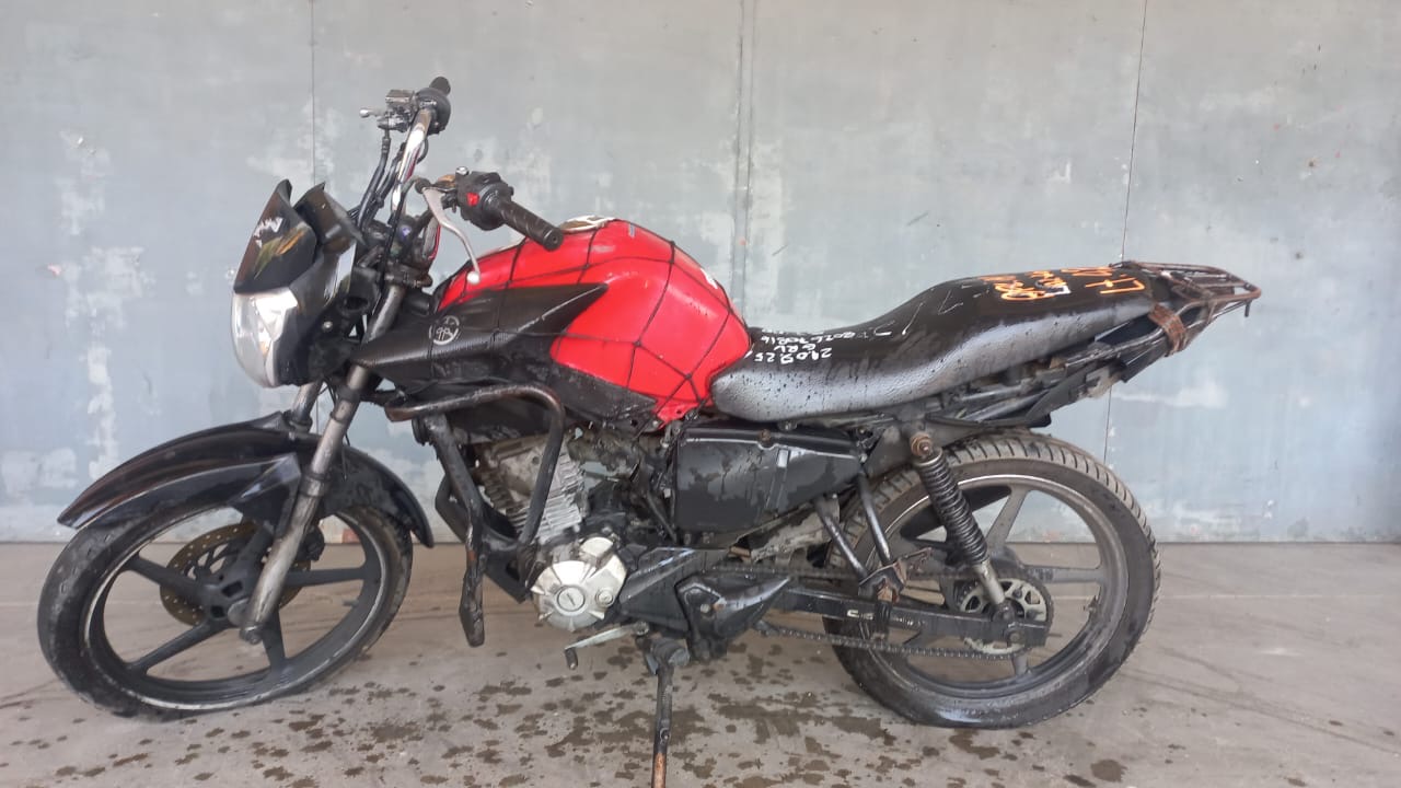 VEÍCULO COM AVARIAS NAS CARENAGENS. PLACA E RETROVISORES AUSENTES. REGULARIZAÇÃO POR CONTA DO ARREMATANTE.