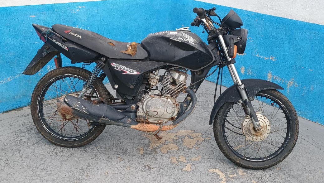 VEÍCULO COM AVARIAS NAS CARENAGENS. PLACA E RETROVISORES AUSENTES. REGULARIZAÇÃO POR CONTA DO ARREMATANTE