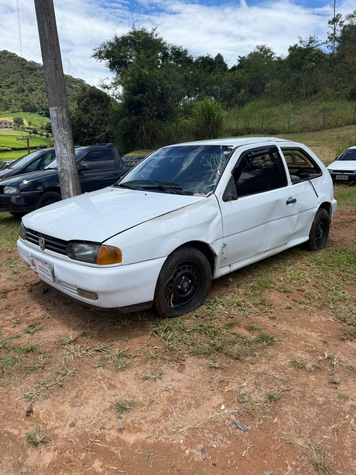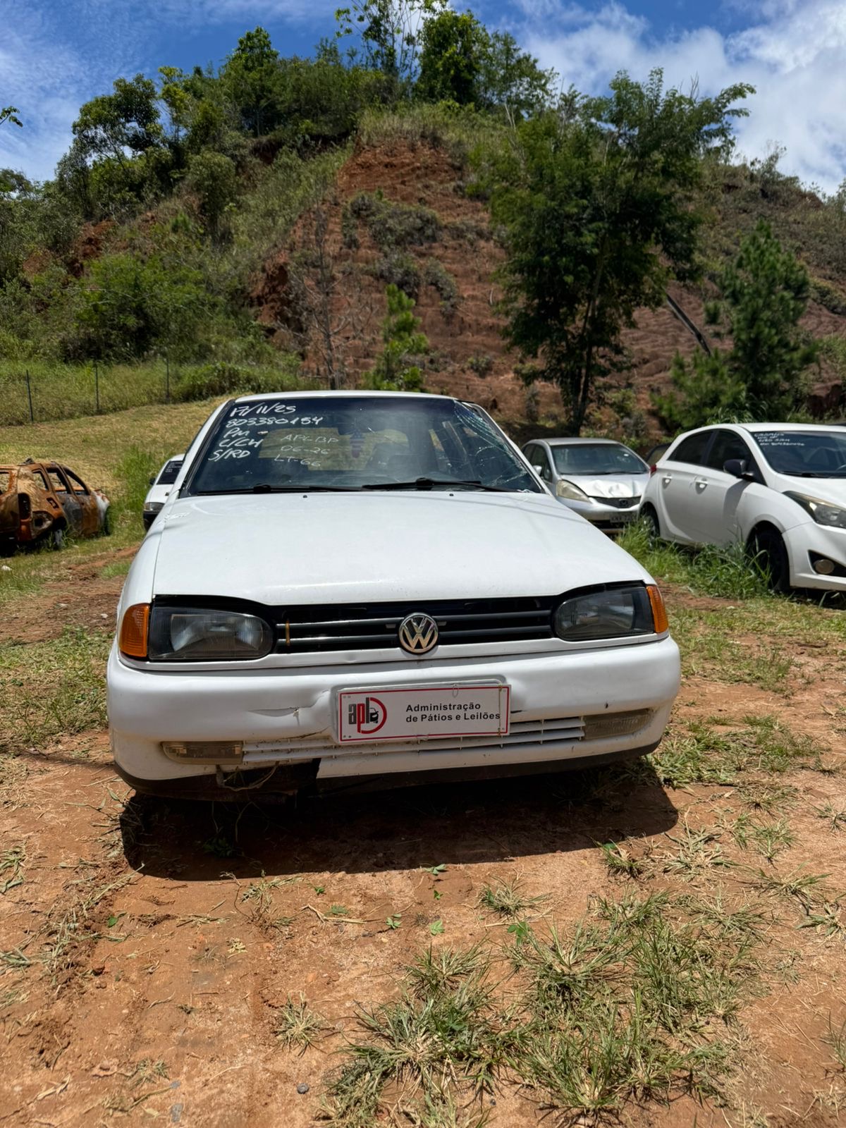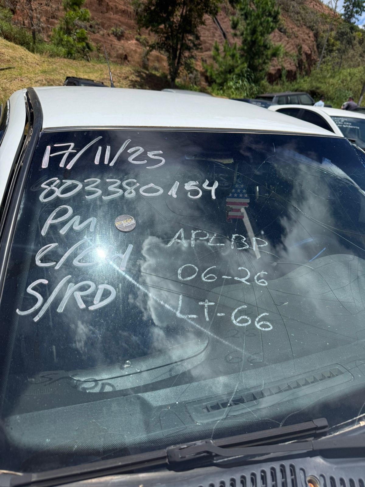 VEÍCULO COM PARA-BRISA TRINCADO. VIDRO DA PORTA TRASEIRA LADO ESQUERDO REMOVIDO. REPAROS DE PINTURA EM TODA SUA CARROCERIA. AVARIAS NA COLUNA CENTRAL LADO ESQUERDO E COLUNA DIANTEIRA LADO ESQUERDO.REGULARIZAÇÃO POR CONTA DO ARREMATANTE