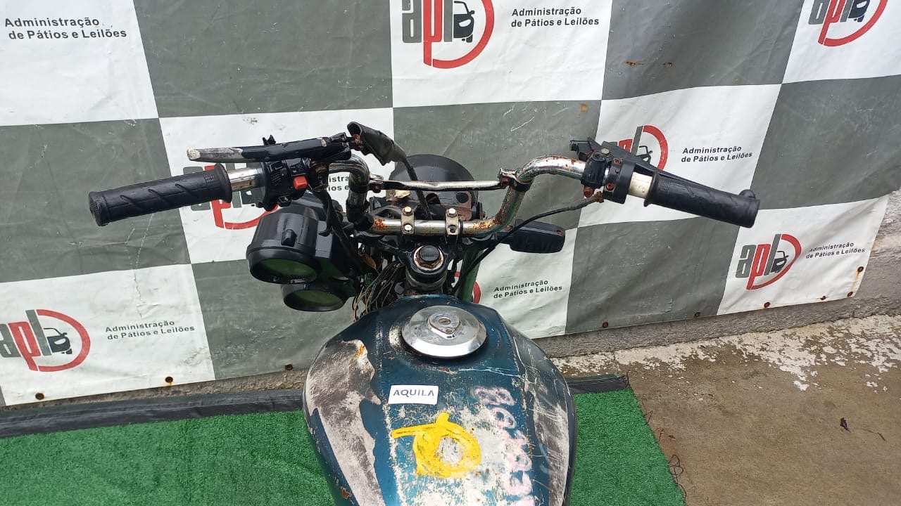 VEÍCULO COM AVARIAS NAS CARENAGENS E TANQUE. ESTRUTURA RUIM. CARENAGEM FRONTAL, BANCO E RETROVISORES AUSENTES. REGULARIZAÇÃO POR CONTA DO ARREMATANTE.