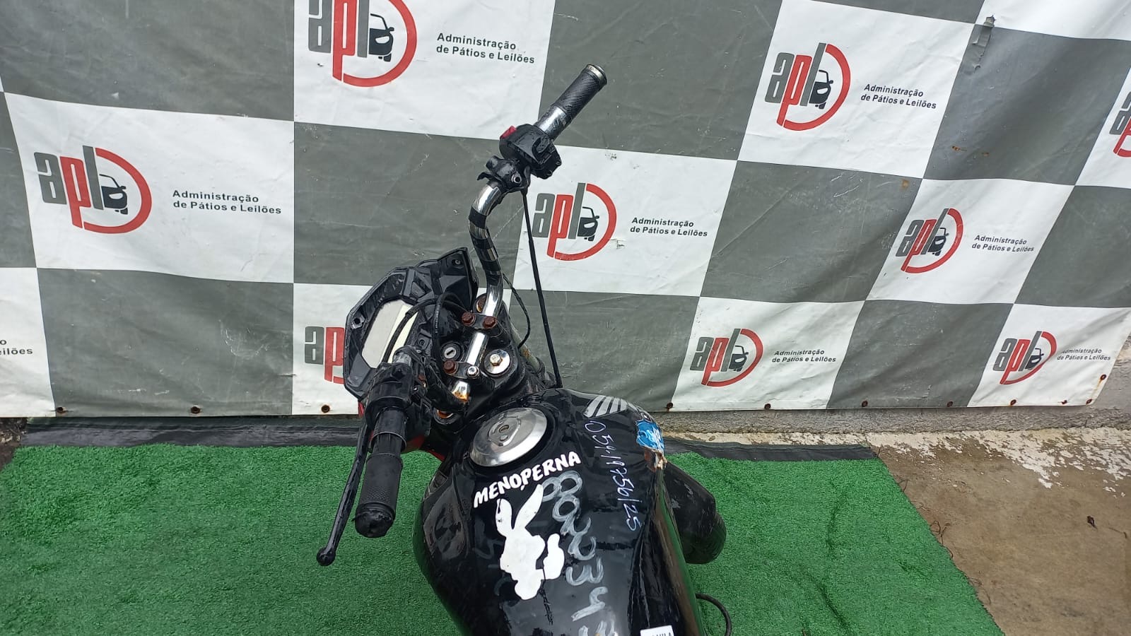 VEÍCULO COM AVARIAS NAS CARENAGENS. PLACA E RETROVISORES AUSENTES. REGULARIZAÇÃO POR CONTA DO ARREMATANTE.