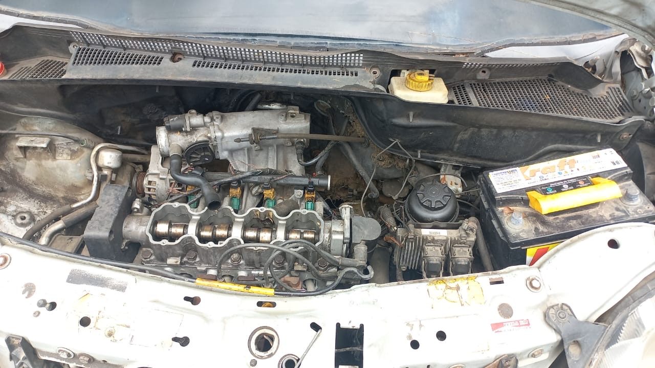 VEÍCULO COM AVARIAS NA FOLHA LATERAL TRASEIRA LADO DIREITO E PARA-CHOQUE TRASEIRO. CABEÇOTE DO MOTOR REMOVIDO. PARA-BRISA E GRAVAÇÃO DO VIDRO DA PORTA DIANTEIRA LADO ESQUERDO NÃO ORIGINAIS. REPAROS DE FUNILARIA E PINTURA EM TODA SUA CARROCERIA. ETAS ILEGÍVEL. REGULARIZAÇÃO POR CONTA DO ARREMATANTE.