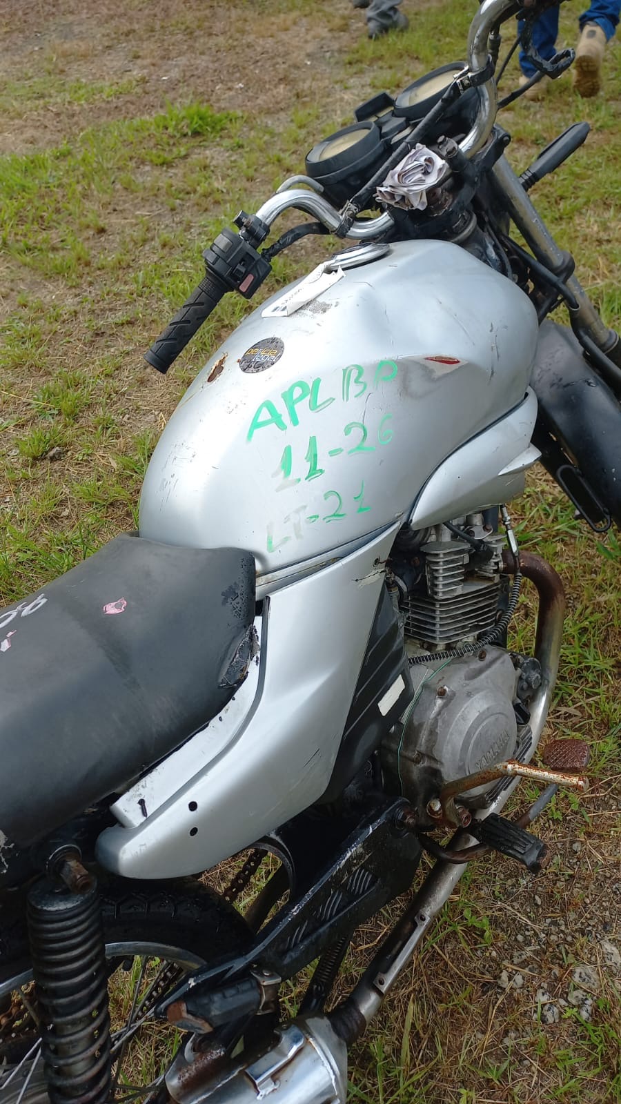 VEÍCULO COM PLACA DANIFICADA E LACRE VIOLADO. TANQUE AMASSADO. CARENAGENS TRASEIRAS REMOVIDAS. REGULARIZAÇÃO POR CONTA DO ARREMATANTE.