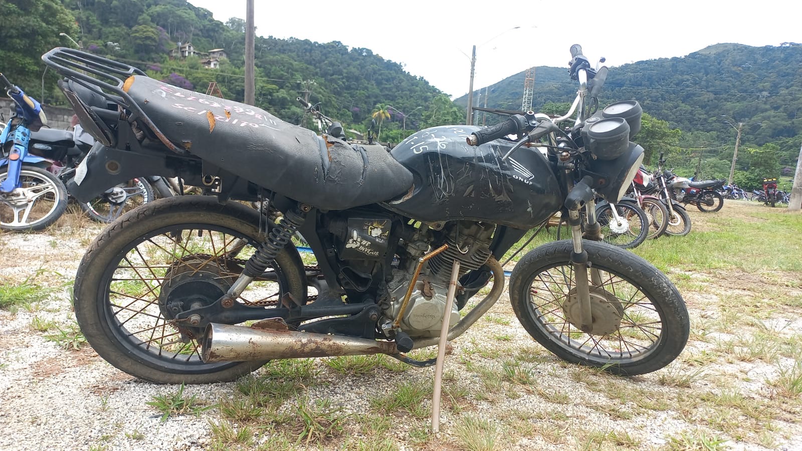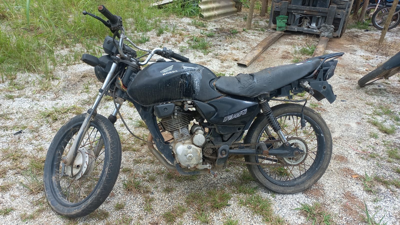 VEÍCULO COM AVARIAS NAS CARENAGENS. CARENAGEM TRASEIRA E RETROVISORES AUSENTES. REGULARIZAÇÃO POR CONTA DO ARREMATANTE.