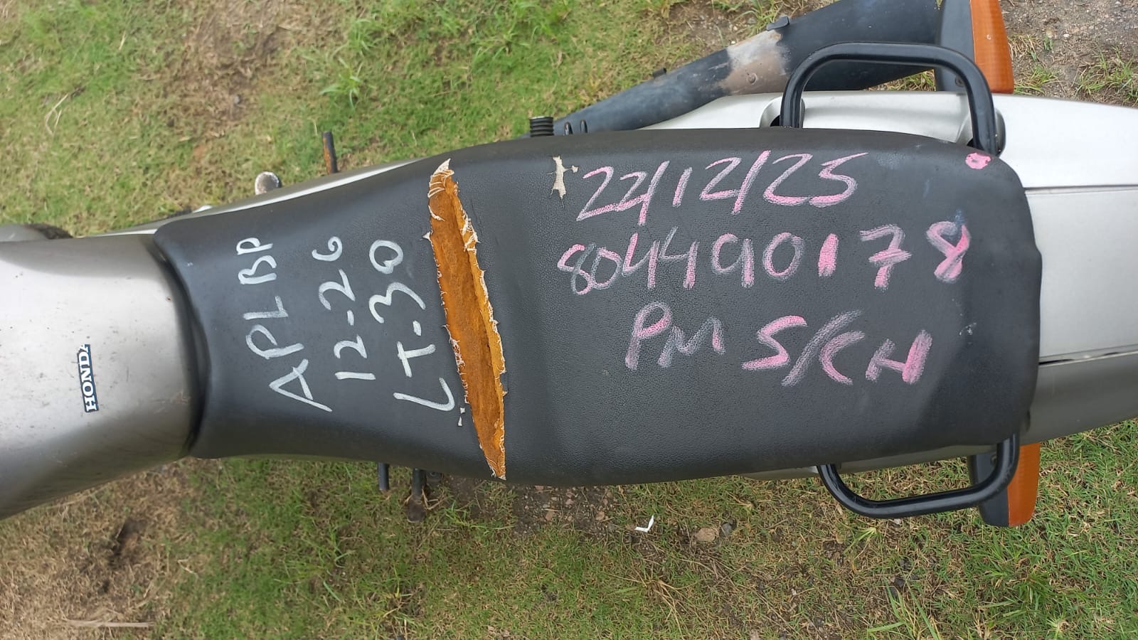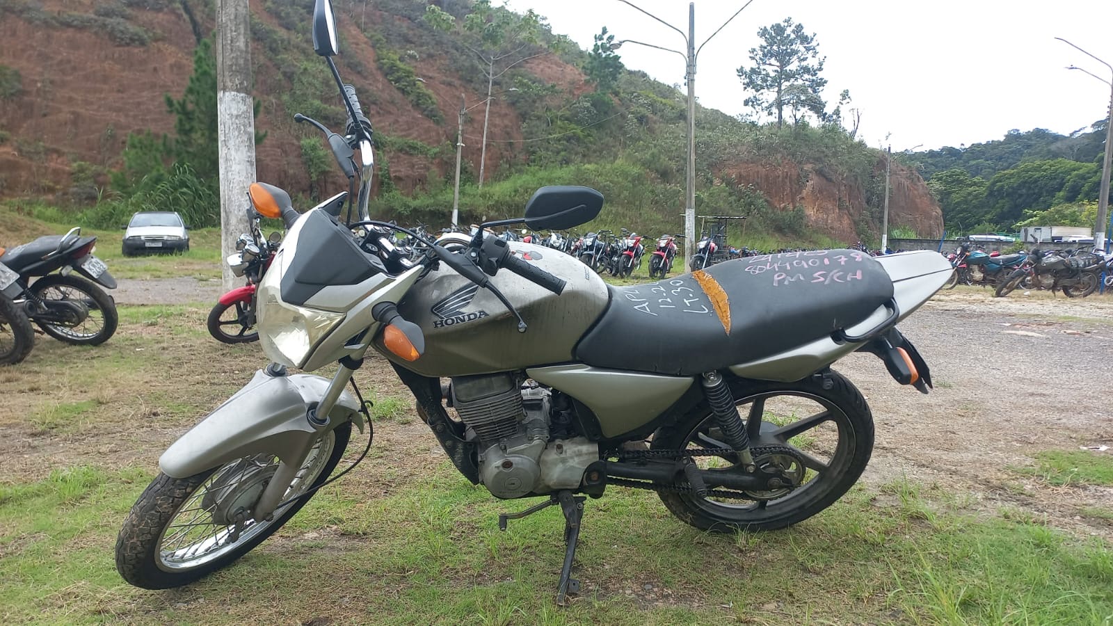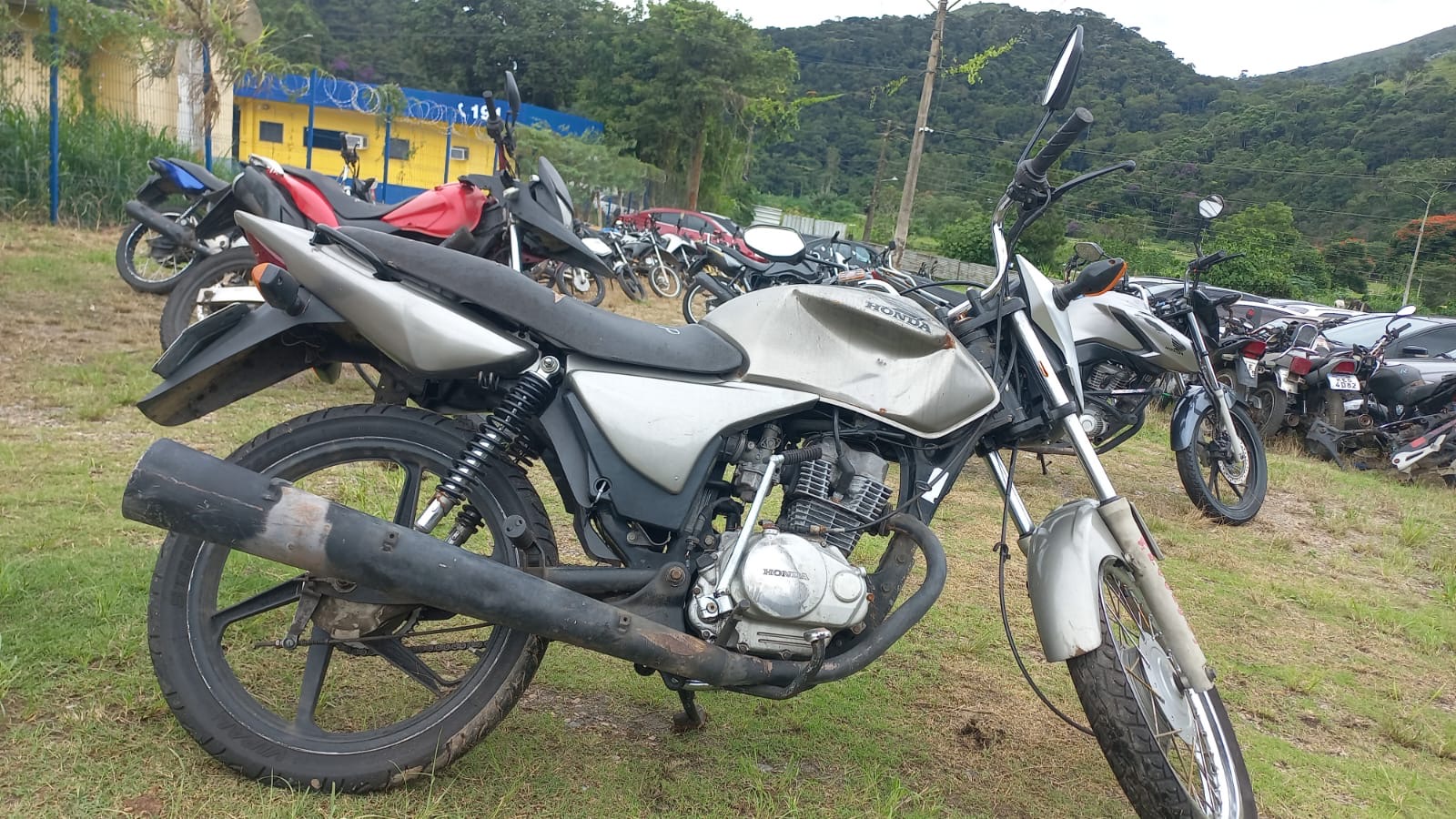 VEÍCULO COM PLACA DANIFICADA E INFORMAÇÕES DESGASTADAS. TANQUE AMASSADO. REGULARIZAÇÃO POR CONTA DO ARREMATANTE.