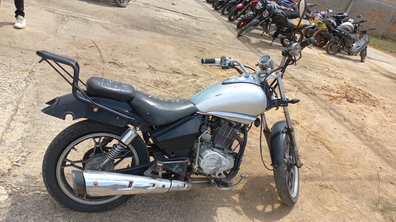 VEÍCULO COM AVARIAS NAS CARENAGENS E FAROL. AUSENTE DE PLACA E RETROVISOR ESQUERDO.REGULARIZAÇÃO POR CONTA DO ARREMATANTE.