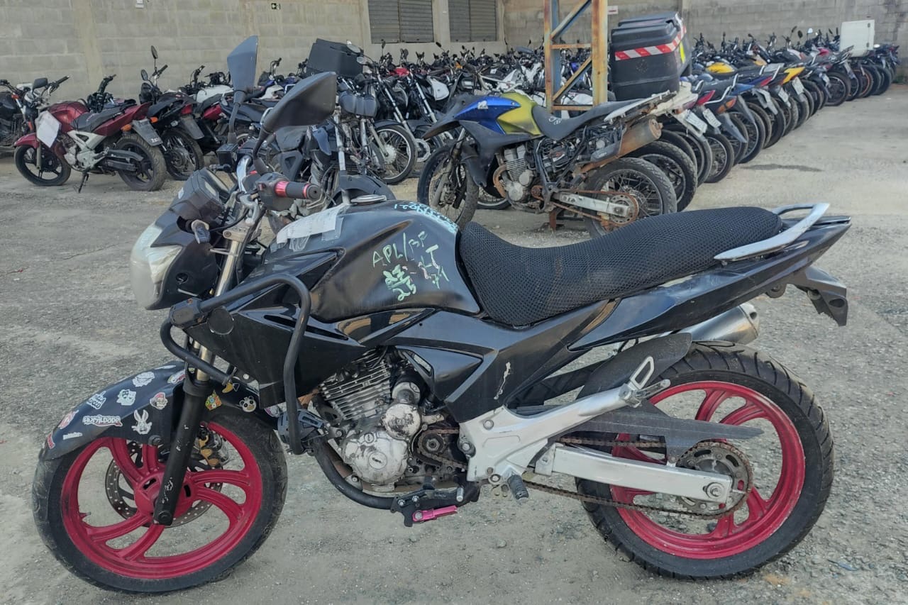 VEÍCULO COM AVARIAS NAS CARENAGENS. PLACA AUSENTE. REGULARIZAÇAO POR CONTA DO ARREMATANTE.
